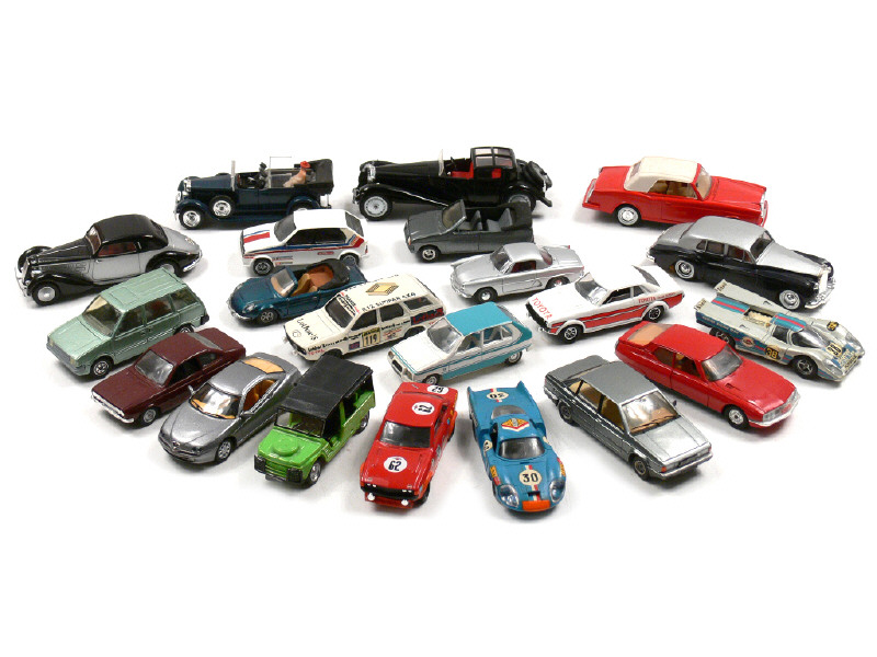 états de 'A' à 'C' - miniatures reproduisant les modèles : BUGATTI, FIAT, CITROËN, TOYOTA, ALPINE, RENAULT, TALBOT, ALFA ROMEO, NISSAN, GULF, DE TOMASO, LANCIA, ROLLS ROYCE & PORSCHE- plusieurs véhicules transformés - quelques petits manques - certaines voitures de la marque VEREM