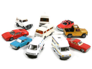 miniatures reproduisant les modèles : FERRARI, FORD (roues & axes non d'origine), IVECO, MERCEDES, PEUGEOT, OPEL, SUZUKI & VOLKSWAGEN