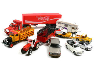 miniatures reproduisant les modèles : AUDI, FIAT, MASSEY FERGUSON, MACK, MERCEDES, WHITE & VOLKSWAGEN