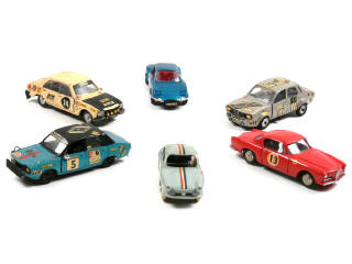 états de 'B' à 'R' - miniatures reproduisant les modèles : PEUGEOT, ALPINE, ALFA ROMEO, RENAULT & MATRA - on y retrouve les marques : C.I.J, DINKY TOYS FRANCE & MÄRKLIN - 3 véhicules transformés - décalques ajoutés