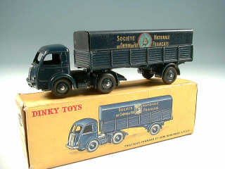 DINKY TOYS (FRANCE) 32AB PANHARD Semi-remorque 'S.N.C.F' (version avec intérieur de toit lisse) bleu foncé (publicité avec locomotive sur carte de France)