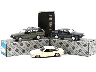 miniatures reproduisant les modèles OPEL MANTA (suspensions affaissées) & VOLKSWAGEN PASSAT - on y retrouve les marques : CONRAD & ZISS MODELL (RARE PROMOTIONNEL) - une boîte en état 'c'