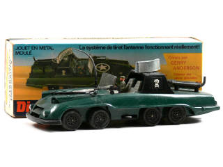 modèle conçu par Gerry Anderson, créateur des célèbres THUNDERBIRDS, COSMOS 1999 & UFO - un ingénieux mécanisme à pierre à briquet projette des étincelles à l'avant du véhicule (fonctionne)