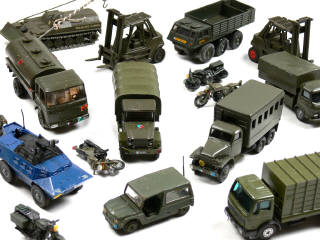 DIVERS Ensemble de 14 véhicules, 4 motos & 2 remorques militaires