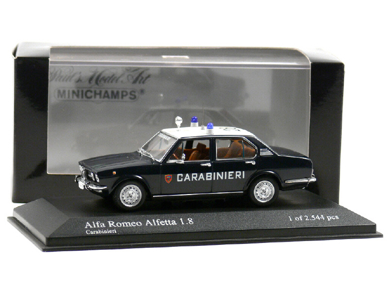 MINICHAMPS (ALLEMAGNE) 120290 ALFA ROMEO ALFETTA 'CARABINIERI' de 1972 bleu nuit & toit blanc
