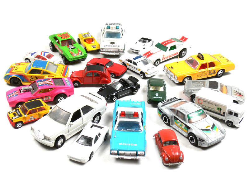 miniatures reproduisant notamment les modèles : PLYMOUTH, FORD, MASERATI, PORSCHE, TOYOTA, MERCEDES, JAGUAR, FERRARI, RENAULT, CITROËN & VOLKSWAGEN - on y retrouve les marques CORGI TOYS & MATCHBOX