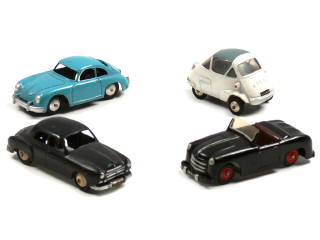 états de 'B' à 'R' - miniatures reproduisant les modèles : RENAULT (roues & axes non d'origine), DE ROVIN, PORSCHE & ISETTA - on y retrouve les marques QUIRALU & CIJ - quelques décalques ajoutés & pneus non d'origine