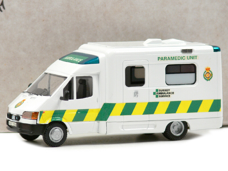 ENSTONE EMERGENCY MODELS (GB) FORD TRANSIT LASER 'SURREY AMBULANCE SERVICE' blanc avec zébrures jaunes & vertes