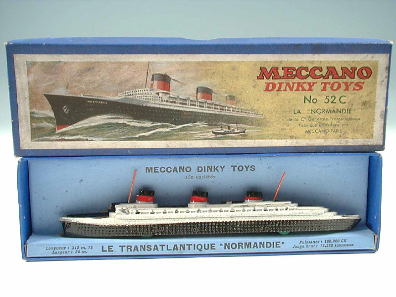 DINKY TOYS (FRANCE) 52D PAQUEBOT 'NORMANDIE' (version d'après-guerre) noir, blanc & rouge