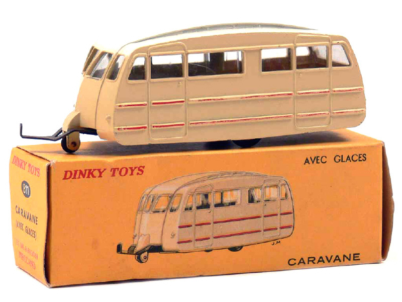 DINKY TOYS (FRANCE) 811 Caravane (version avec toit lisse) crème, filets rouges, toit blanc