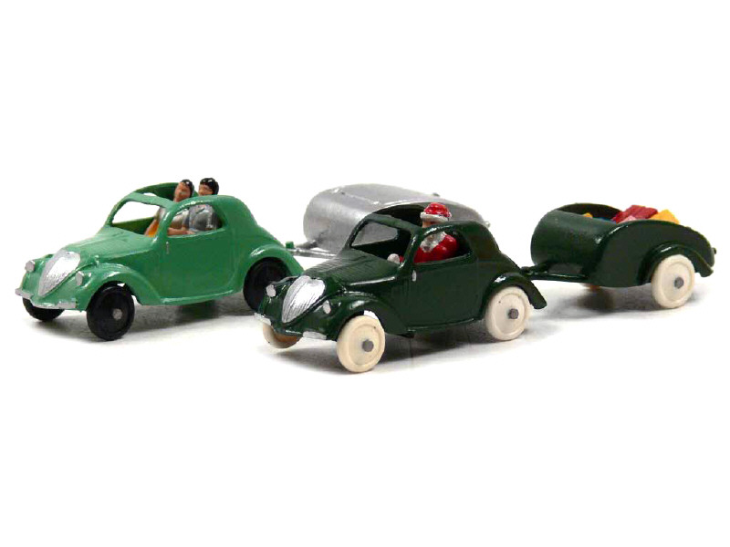 CLUB DINKY FRANCE CDF 34 SIMCA 5 avec remorque 'CONGES PAYES' vert amande soutenu & gris métal