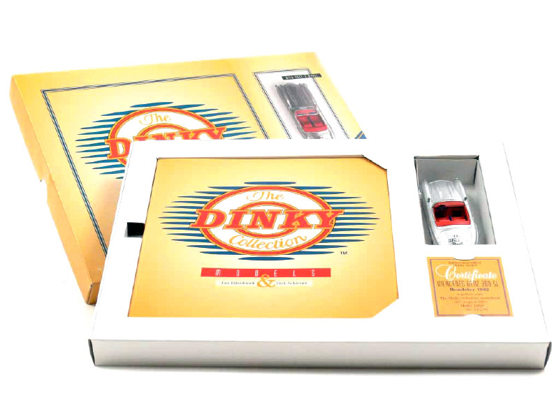 contient : un catalogue accompagné d'un fascicule décrivant les différents modèles de la marque (auteurs : Jan ELLENBROEK & Dirk SCHLEUER) & une MERCEDES 300SL cabriolet 'THE DINKY BOOK' - avec certificat d'édition limitée numéroté 434/600 exemplaires