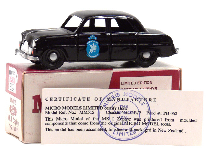 MICRO MODELS (NOUVELLE-ZELANDE) MM515 FORD ZEPHYR Sedan 'NZ TRANSPORT DEPT' noir