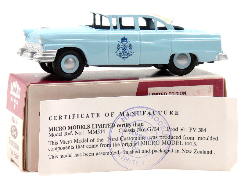 MICRO MODELS (NOUVELLE-ZELANDE) MM514 FORD CUSTOMLINE SEDAN 'VICTORIA POLICE' bleu pâle & blanc