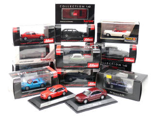 comprend : 3 MERCEDES (600 SEL, 280 E & 220 SE cabriolet), 2 FERRARI (348 TB & F40), 3 PORSCHE (911 cabriolet, BOXSTER & 911 CARRERA), ROVER 75, AUDI TT & 6 BMW (Z3 coupé, 600, 328 I TOURING, 528 I TOURING, 316 I COMPACT & 2500) - on y retrouve les marques : SCHUCO, FALLER & HERPA