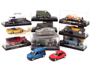 comprend : RENAULT CLIO 'AUTOMOBILE MINIATURE', RENAULT KANGOO 'SOLIDO-VEREM PORTES OUVERTES OCTOBRE 1999', FORD V8 'AUTOMOBILE MINIATURE', PEUGEOT EXPERT 'CLUB AUTOS MINIATURES PEUGEOT', HISPANO SUIZA 'CLUB SOLIDO' (avec pin's), CHEVROLET CORVETTE cabriolet 'PORTES OUVERTES CLUB SOLIDO', RENAULT CLIO 'CHATEAU DE LA VIGNE' (avec planche de décalques), DODGE CUSTOM 'CLUB SOLIDO' (avec pin's), VOLKSWAGEN BULLI '20ème ANNIVERSAIRE AUTOMINIATOURS BOURSE D'ECHANGES 1977-1997', CITROEN 15CV 'CLUB SOLIDO', VOLKSWAGEN BULLI 'AUTOMOBILE MINIATURE', RENAULT TRAFIC 'AUTOMOBILE MINIATURE' & carrosserie de PEUGEOT 406 coupé sur socle 'CLUB SOLIDO' - 2 modèles sans boîte