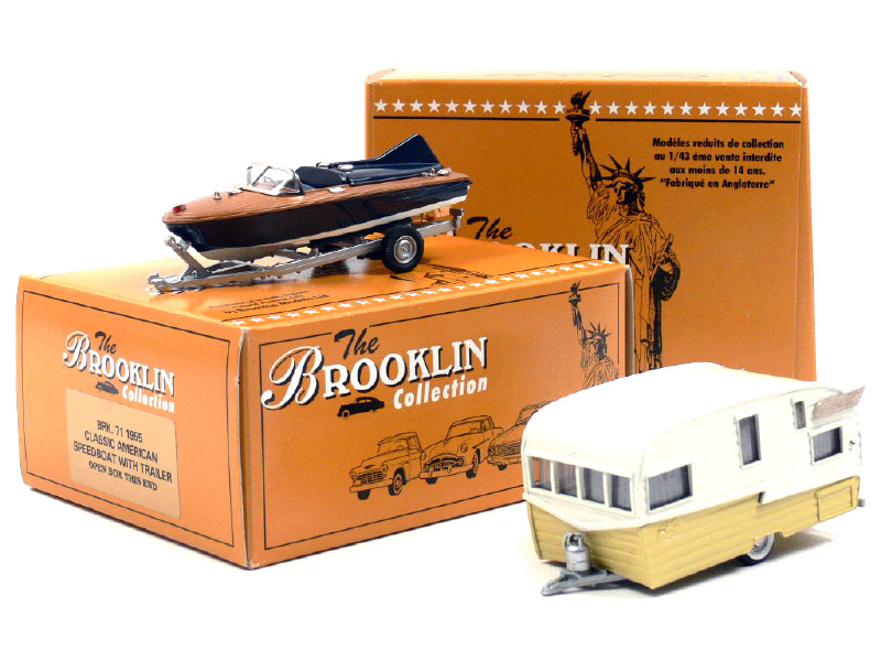 BROOKLIN MODELS (GB) 71 SPEEDBOAT sur remorque 1955 bleu marine & bois
