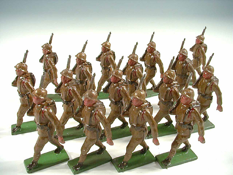 FIGURINES en plomb creux Ensemble de 16 soldats français au défilé