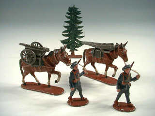 QUIRALU (FRANCE) Chasseur alpin muletier avec son mulet porte-bâts