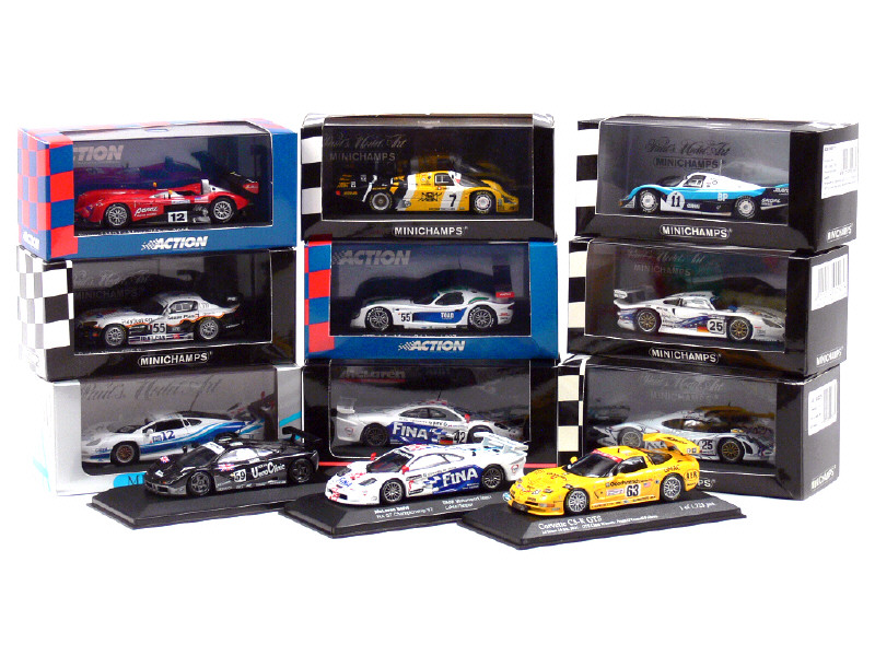 miniatures reproduisant les modèles : Mc LAREN, JAGUAR, DODGE, PANOZ, CHEVROLET & PORSCHE - quelques surboîtes non conformes