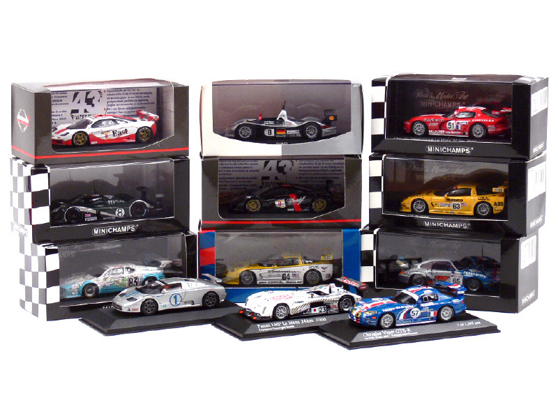 miniatures reproduisant les modèles : BUGATTI, PANOZ, CHRYSLER, PORSCHE, Mc LAREN, BMW, CHEVROLET, BENTLEY & AUDI - quelques surboîtes non conformes