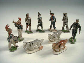 comprend : un marin avec trompette, un chasseur alpin, un saint-cyrien & deux aviateurs