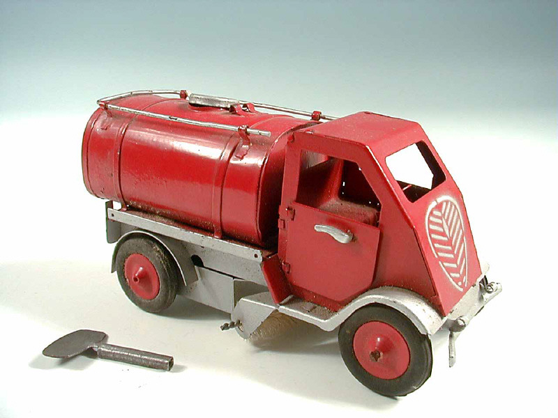 longueur 18 cm - moteur mécanique (fonctionne avec sa clef) - complet - manque chauffeur - direction - la citerne est fonctionnelle - TRES BEAU MODELE DE 1949 !