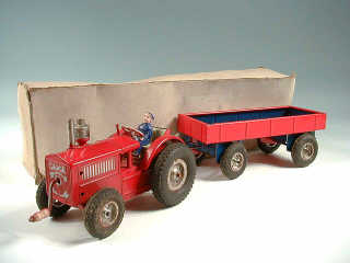 GAMA (ALLEMAGNE) Tracteur agricole avec remorque à 2 essieux rouge & bleu marine