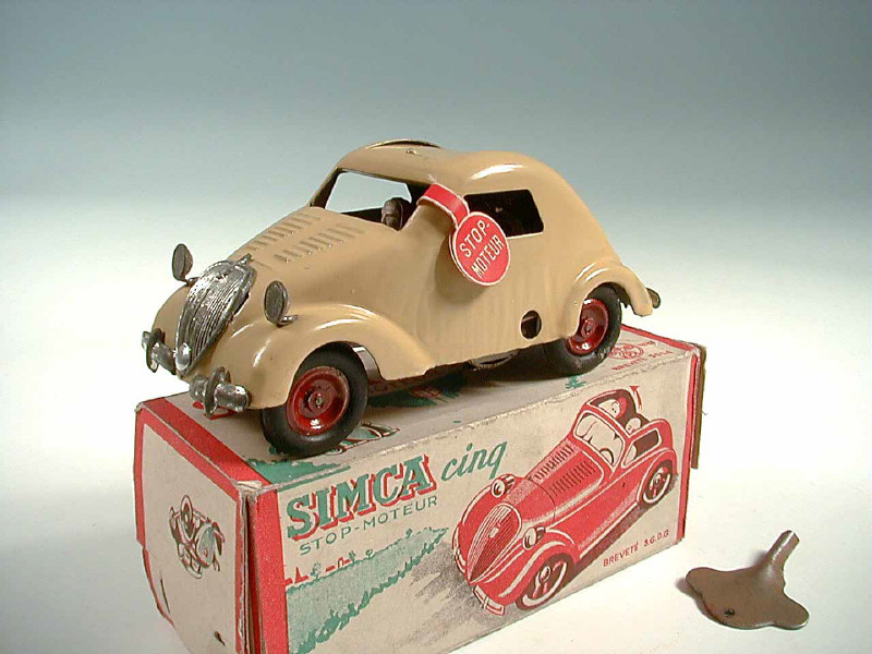 longueur 13 cm - moteur mécanique (fonctionne) - version avec 2 passagers en composition - étiquette 'STOP-MOTEUR' non détachée - SUPERBE !