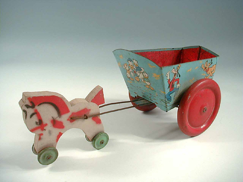 longueur 30 cm - en tôle & bois - les flancs sont illustrés de personnages de Walt Disney - petites traces d'oxydation