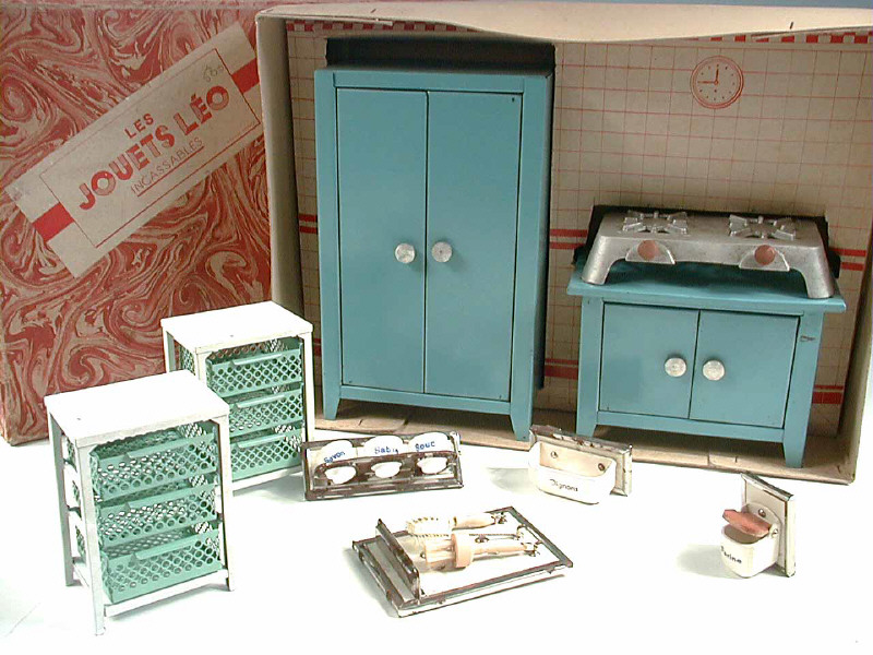 LES JOUETS LEO (FRANCE) Coffret mobilier de cuisine bleu ciel & argent