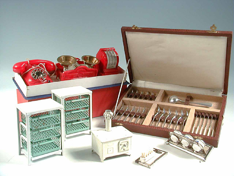 dimensions du coffret : 31 x 9,5 x 9 cm - comprend : un téléphone mécanique avec sonnerie, une balance avec poids & une caisse enregistreuse avec tiroir à ouverture automatique