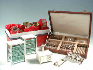 dimensions : 19 x 29 cm - contient un service 25 pièces en fer blanc