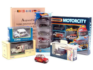 miniatures reproduisant notamment les modèles : LAND ROVER, MINI (un modèle avec parties repeintes & manquantes), JEEP, FORD, LANCIA, PEUGEOT, RENAULT, MORRIS & DAF (modèle promotionnel 'UPS') - on y retrouve les marques : CORGI TOYS, LLEDO, HOT WHEELS & MATCHBOX