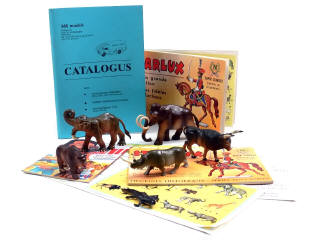 STARLUX (FRANCE) Ensemble de 6 animaux préhistoriques, 2 catalogues & 3 dépliants
