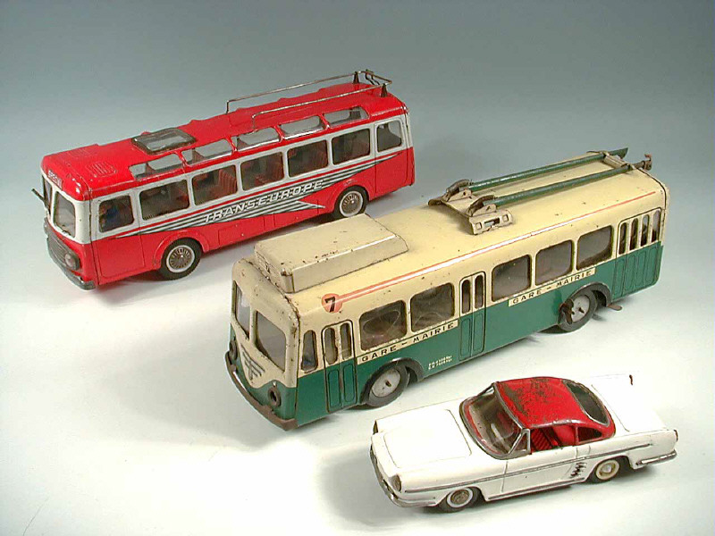 en tôle lithographiée - longueur 39 cm - moteur à friction (à revoir) - manque un essui-glaces & pare-chocs arrière - verrière sur le toit