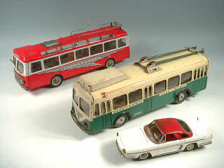 JOUSTRA (FRANCE) 444 VECTRA Trolleybus en tôle 'GARE-MAIRIE' vert & crème