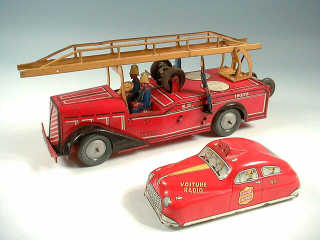 JOUSTRA (FRANCE) 429 Camion de pompiers 'LE VULCAIN' en tôle lithographiée rouge & jaune