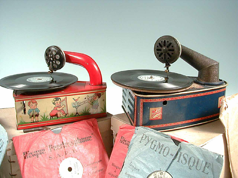 CIC PYGMATOR Phonographe d'enfant en tôle bleu marine & rouge