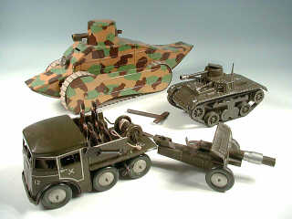 JOUSTRA (FRANCE) 701 Camion militaire tire-canon en tôle lithographiée kaki