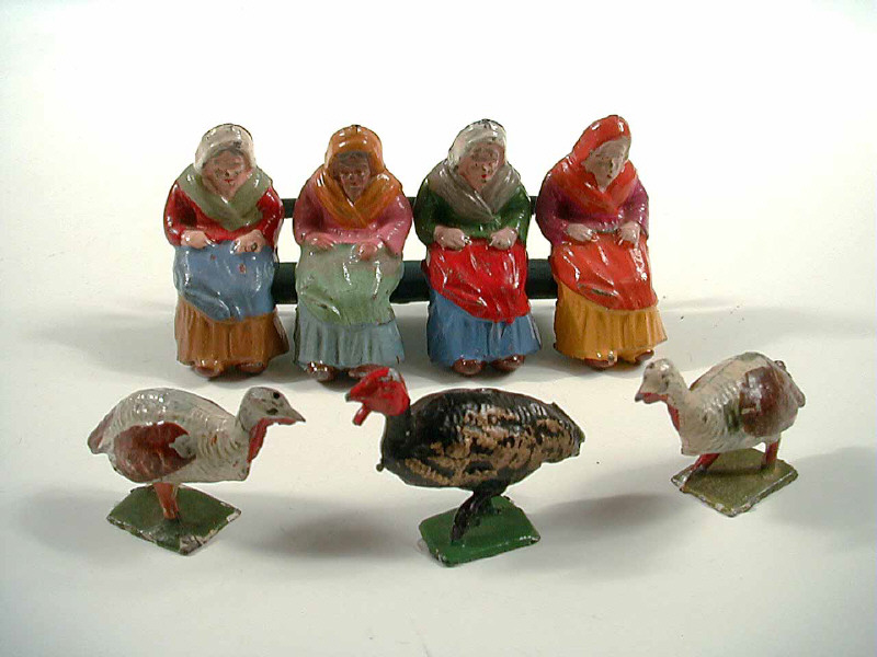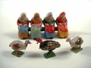 FIGURINES en plomb creux (FRANCE) Ensemble de 4 fermières sur le banc