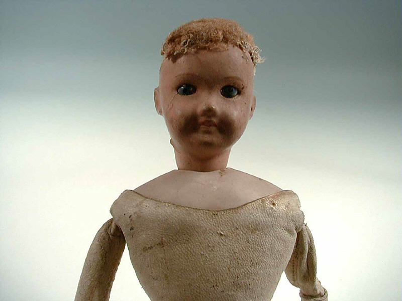 (Société Française des Bébés et Jouets) - tête en composition marquée en creux 'SFBJ' - yeux fixes bleus & bouche fermée - collerette en biscuit & corps en peau - articulations à goussets aux coudes, hanches & genoux - accidents aux bras et à un pied - corps de poupée de mode fin XIXème siècle - hauteur 36 cm