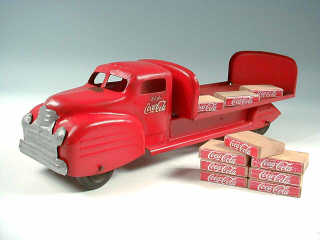 LINCOLN TOY (CANADA) Camion-plateau brasseur 'COCA-COLA' en tôle rouge