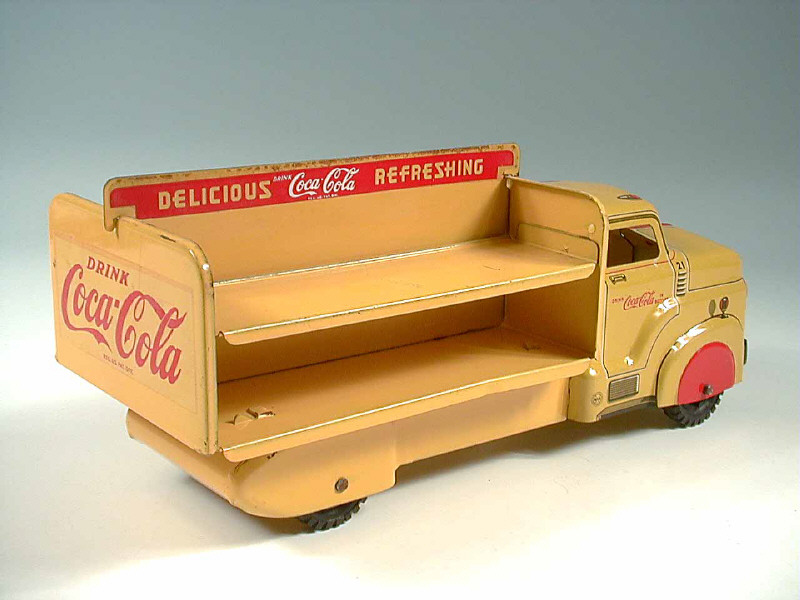 MARX TOYS (USA) Camion-brasseur 'COCA-COLA' en tôle jaune & rouge