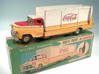 SANYO (JAPON) Camion-fourgon 'COCA-COLA' en tôle jaune, blanc & rouge