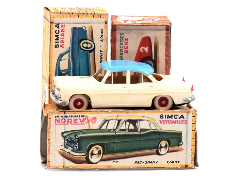 manque antenne - petites traces de décoloration sur les côtés - on y joint 2 boîtes de SIMCA ARIANE & MERCEDES DE COURSE