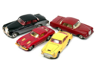 états de 'C' à 'D' - comprend : CHEVROLET CORVETTE STING RAY (pellicule chromée des parties plastique en grande partie effacée), MERCEDES 220 SE coupé, ASTON MARTIN DB4 & BENTLEY CONTINENTAL SPORTS SALOON (plaques minéralogiques repeintes & roue de secours non d'origine)