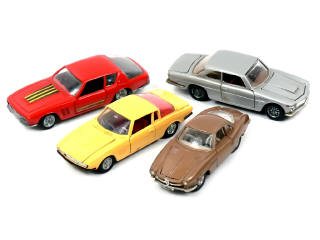 états de 'B' à 'C' - comprend : ISO RIVOLTA, FORD MUSTANG 2+2 BERTONE, JENSEN COUPE VIGNALE & ALFA ROMEO GIULIA SS (quelques traces d'humidité & une partie de pare-chocs manquant) - carrosserie légèrement poussiéreuse - pellicule chromée de quelques pare-chocs en grande partie effacée