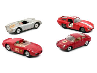 états de 'B' à 'C' - comprend : PORSCHE SPYDER (manque pilote & petites traces de stylo feutre rouge sur la carrosserie), FERRARI 2L5, ABARTH 1000 & ALFA ROMEO GIUILIA TZ (jantes ternies) - carrosseries légèrement poussiéreuses