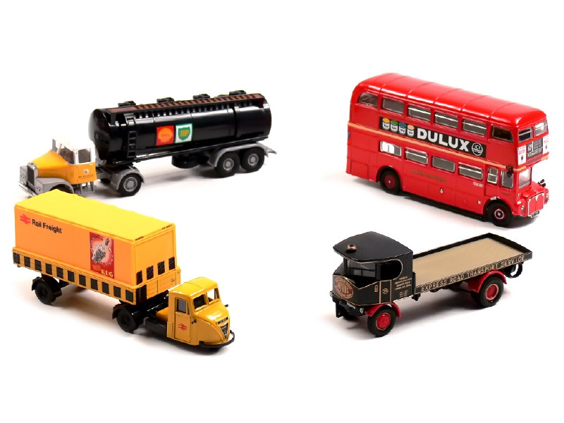 miniatures reproduisant les modèles : SCAMMELL, SENTINEL & ROUTEMASTER (rétroviseurs endommagés) - quelques accessoires manquants